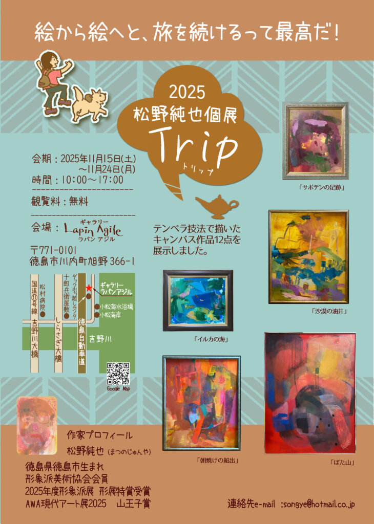 『2025松野純也個展Trip』が徳島市川内町の ”ギャラリー ラパンアジル” で開催しました。